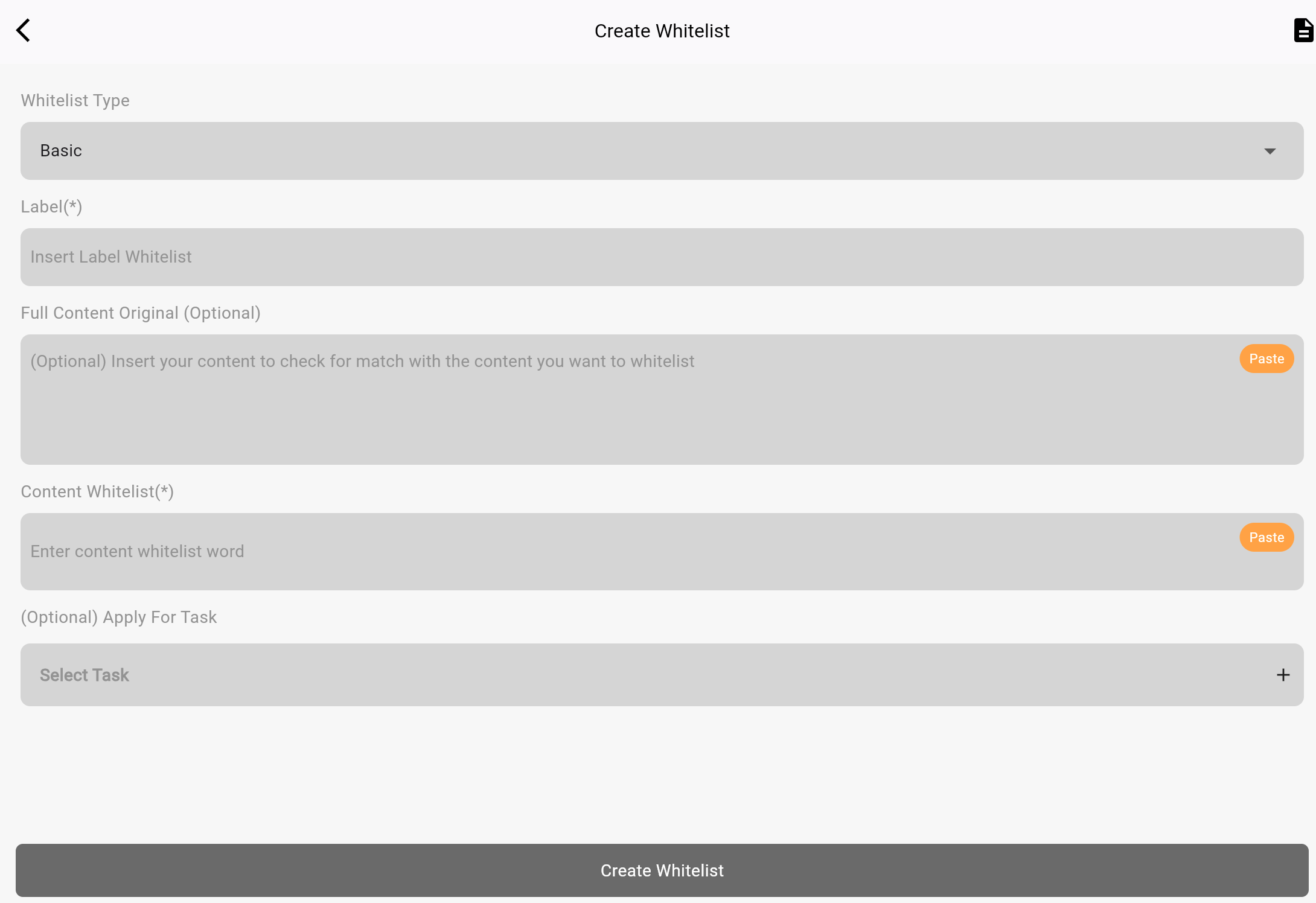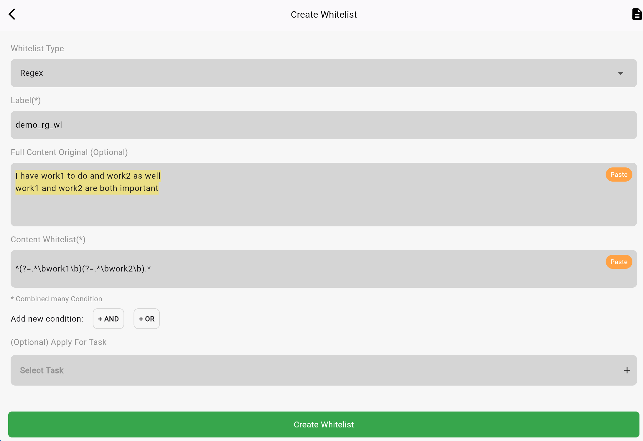 Use this feature when you want the Whitelist rule to work globally across all tasks.