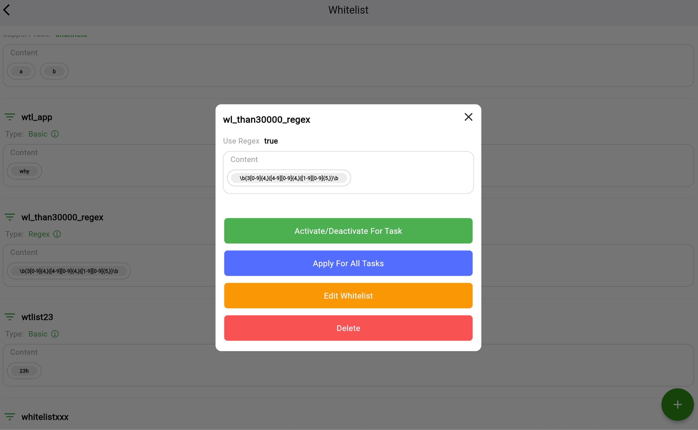 This option allows you to apply the Whitelist rule to all existing tasks.
