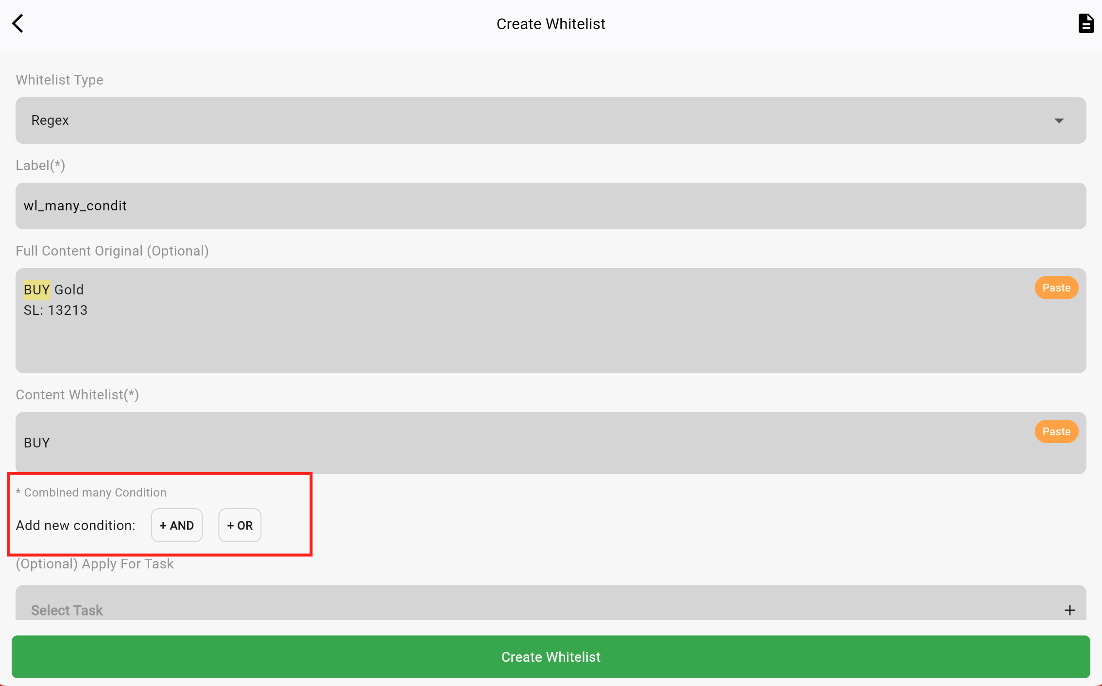 The Whitelist feature allows you to control which messages are forwarded based on keywords, regex patterns, or specific users. This guide explains how to apply or disable Whitelist rules for individual tasks or globally across all tasks.